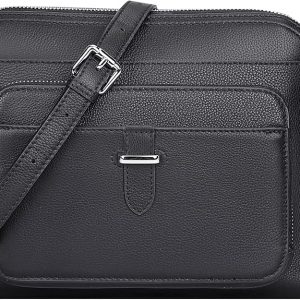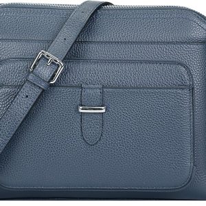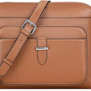 S-ZONE Leather Crossbody Bags for Women Shoulder Bag Multi Compartments Bucket Purses