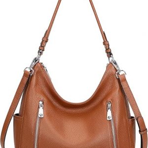 Over Earth Soft Genuine Leather Hobo Bags for Women Medium Shoulder Purses with Multi Pockets