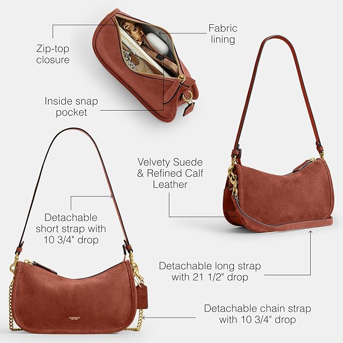- Velvety Suede & Refined Calf Leather: Crafted of our eminently touchable, buttery, supple, oh-so-soft suede and our classic refined calf leather – for a luxurious Coach crossbody bag