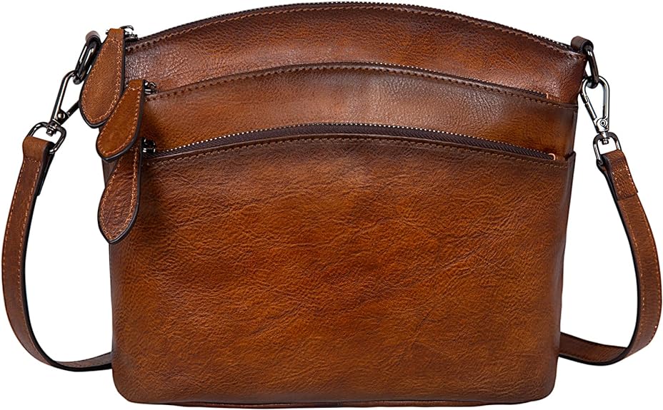 HESHE Crossbody Bags are high quality vegetable tanned leather, soft, durable and lightweight . 3 top zipper with high quality Tarnish hardware and Reinforced bronze interior polyester lining.