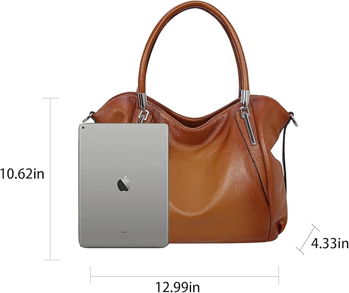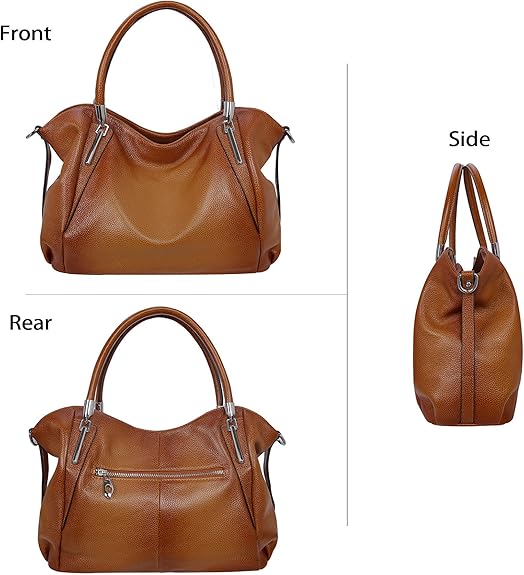 - Versatile Design: The genuine leather handbags have sturdy top handles and a detachable long shoulder strap, offering multiple ways to carry it. Top handle, shoulder or cross-body. The top handle is 7.48in high; the long shoulder strap is about 45.66in-51.57in long.