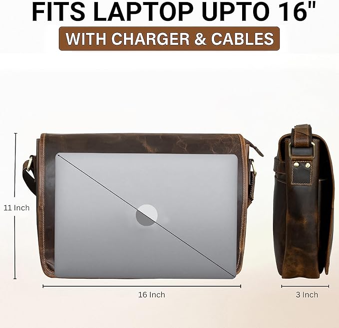 • ✅  Leather Messenger Bag for Men are made from Full grain Buffalo leather, this Laptop bag has a rustic and distressed appearance that not only looks great but feels and smells amazing as well. Crafted by expert artisans and rugged materials, ensuring it will last for years to come.