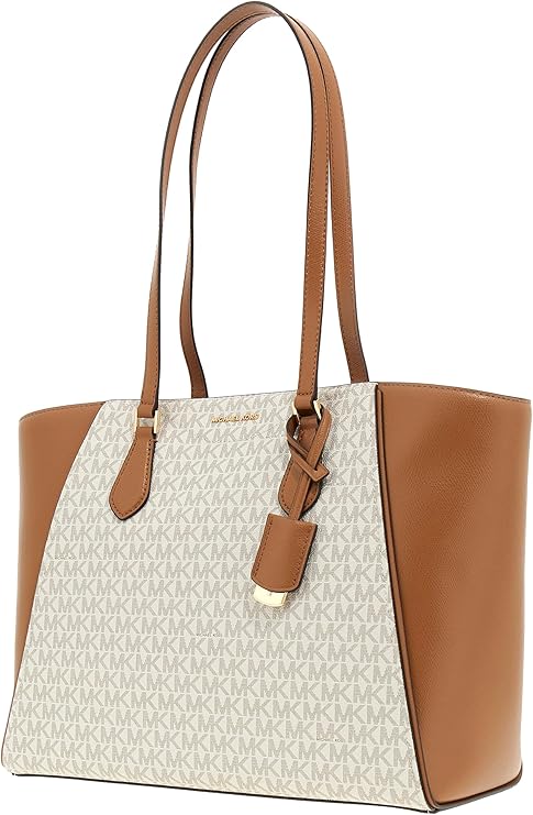 - The Michael Kors Taryn tote bag is a polished staple for workdays, weekends, and every moment in between. Crafted from our Signature logo-print canvas with leather trim, this structured bag features trapeze stitching and a detachable lock charm. It unzips to reveal a spacious interior, complete with side pockets and a center compartment for your tablet or valuables.