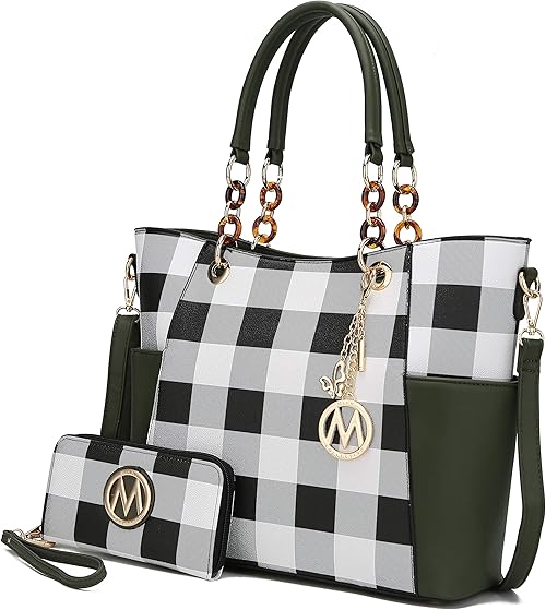 • CHIC AND STYLISH 2-PC Set: The Mariely designer handbag shows off women’s purses at its best, stylishly casual for work and shopping! luxurious gold tone embellishments and Decorative M keychain make it even more stylish! Available in a range of gorgeous shades, choose a color that matches your dress.