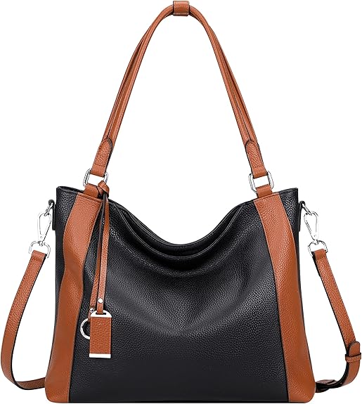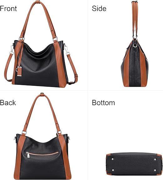 • Material: This woman’s shoulder bag is made of top grain first layer cowhide leather (genuine leather) with pebbled texture; Brown color polyester lining; High-quality silver metal color hardware.